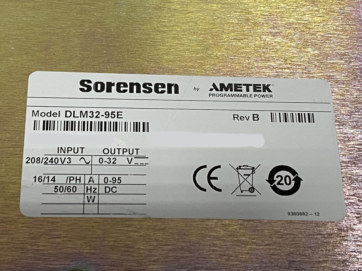 SORENSEN DC POWER SUPPLY 32V, 95A